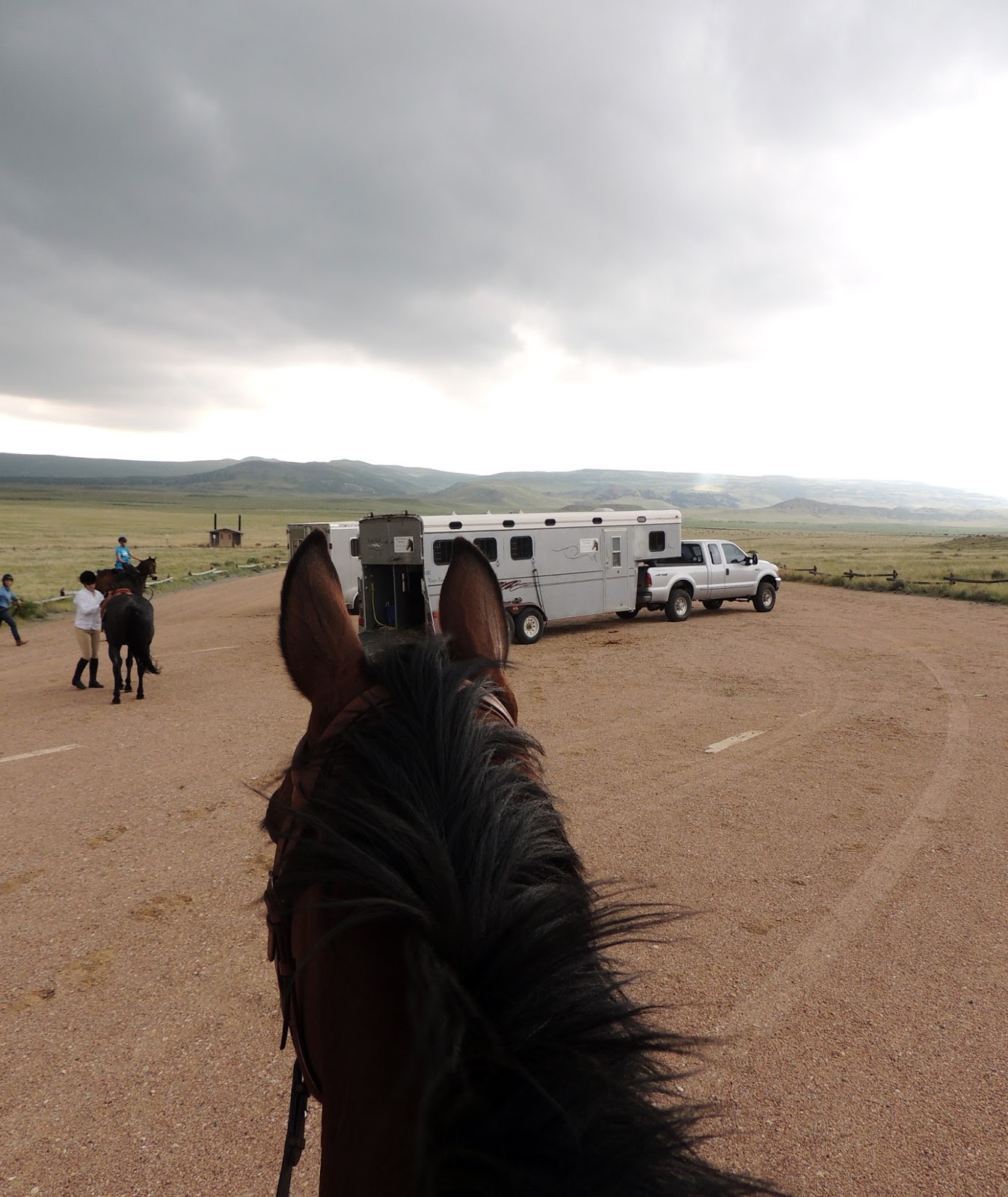 As we finished our ride we hustled back to the trailers just as a huge thunderstorm with hail came crashing in. You've never seen people untack and load horses into trailers so fast!