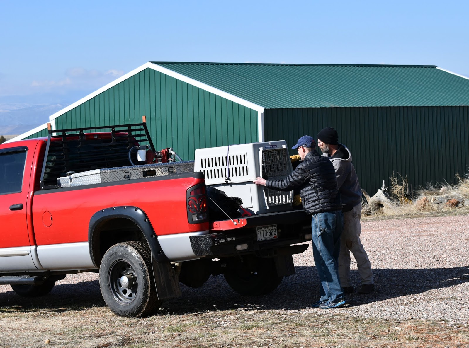 Once I had shut the door, Owen and Shane picked up the crate and put it in the back of Shane's truck. He and Cheryl took the turkey home, and then returned my crate.