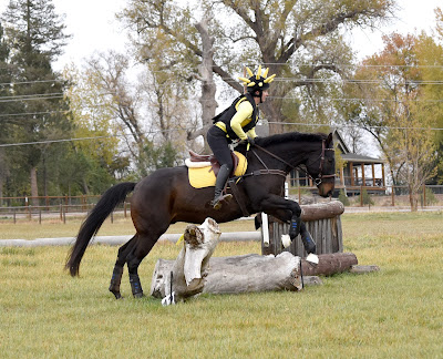I love this photo of Raven "loading her springs" to jump up and over the rock wall.