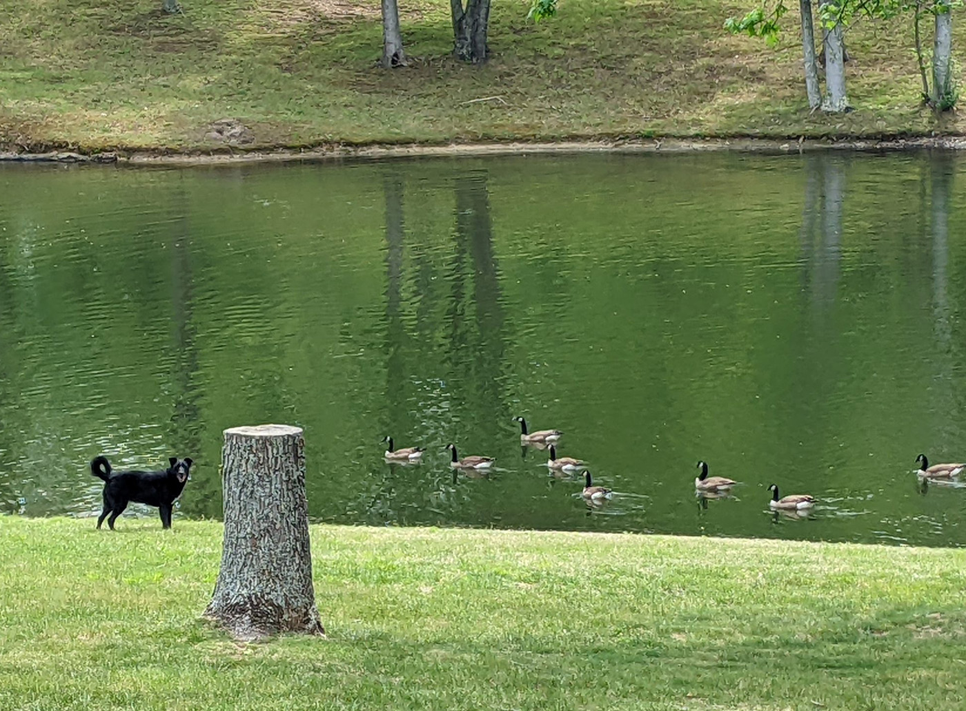 All the dogs, but Mahzi in particular, have been enjoying the pond. There is a funny dynamic between the Canadian geese and the dogs. I don’t love the geese, but they are humorous to watch. The dogs will charge right into the flock while they are in the grass, prompting them all to fly squawking into the lake. Rizzo, Mahzi, and Pascal only goes in a little ways after them, since the pond gets deep fast and the dogs like to wade but really get in over their heads. Once they've gotten their toes into the water but it's become obvious they are not going too much farther, the geese all turn around and swim towards the dog menacingly.